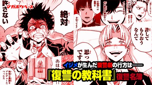 マガポケで絶賛連載中、イジメが生んだ壮絶な復讐を描く大人気サスペンス『復讐の教科書』。物語もクライマックスに入り、徐々に復讐劇の始まりが明らかになっています――。 そんな本作を最後まで堪能してもらうべく、ストーリーとキャラクターを“復讐”…いや“…