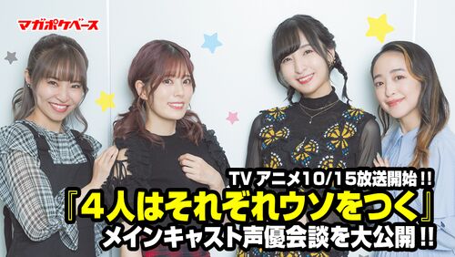 いよいよ10月15日深夜の放送開始が近づいてきた、新感覚“カオス”学園コメディ『4人はそれぞれウソをつく』! 今回はTVアニメ放送開始を記念して、メインキャスト声優会談を大公開しちゃいます! さらに、「別マガ」11月号ではスペシャルプレゼント企画も実施…