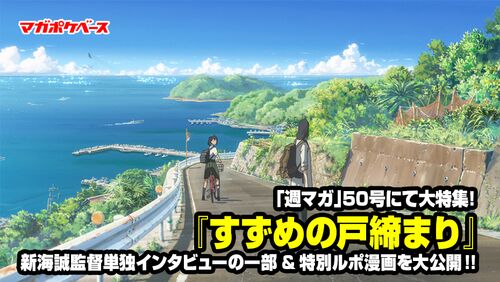 公開直前! 新海誠監督最新映画『すずめの戸締まり』を、「週マガ」50号にて巻頭カラー20pの大特集!! 今回は、そんな豪華企画の中から、新海誠監督単独インタビューの一部を特別に大公開しちゃいます! さらに、『隣の黒木さんは飲むとヤバイ』のきつねこ先…