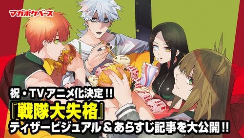 皆さまの応援のおかげで『戦隊大失格』のTVアニメ化が決定!! 今回は、本作のティザービジュアルを大公開しちゃいます! さらに、今からでも読み始められるあらすじ記事もお届け! ●特報 TVアニメ化決定!!!超ティザービジュアル到着!! 監督・さとうけいいち(…