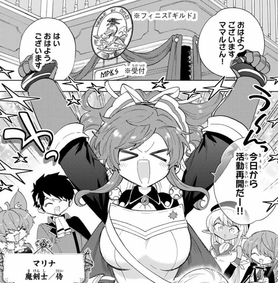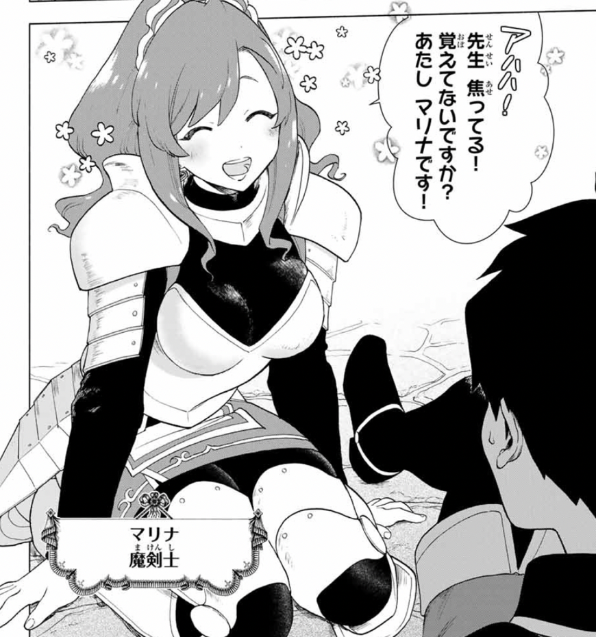 「冒険者予備研修」の教官をしていたユークの元・教え子たちでした! 路頭に迷って冒険者を引退しようとしていたユークを、マリナは自分たちのパーティに誘ってくれるんですね!