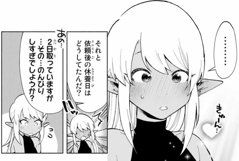 しかしですね……、こんなまじめで素敵なヒロインなのに、ダークエルフというだけで、ときにひどい偏見の目で見られることも……。