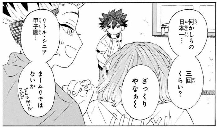 そうして、試合をするにもメンバー数が足りていなかったゲンジの野球チームに入団することに決めた余波。ゲンジとは一時共闘し、2人で日本一を目指すと宣言するのです!! か、かっこいい……!!