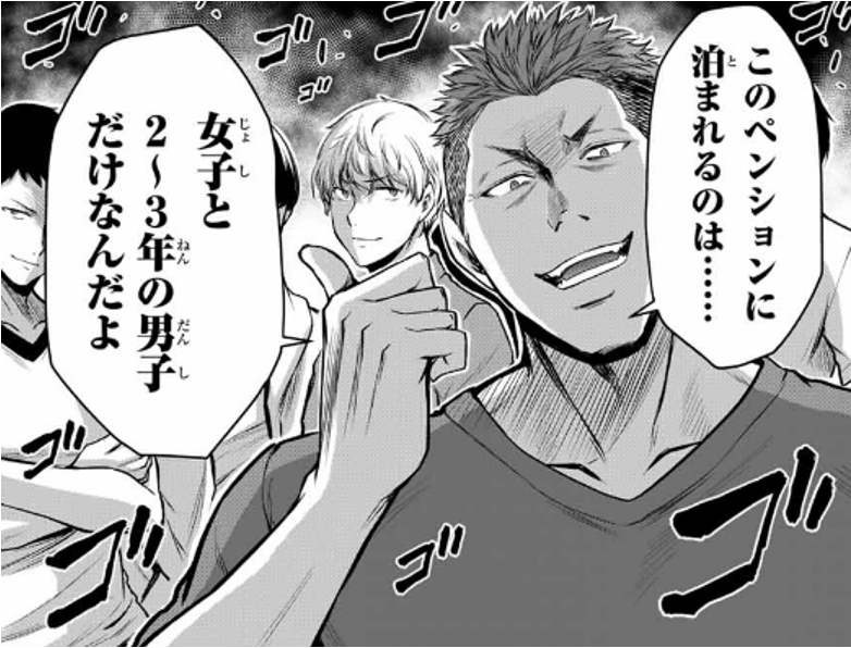 宿泊施設としてペンションが用意されていますが、そこには女子と2~3年の男子しか泊まることができません。さらに、女の子たちはかわいさ別にグループ分けがされているようです。