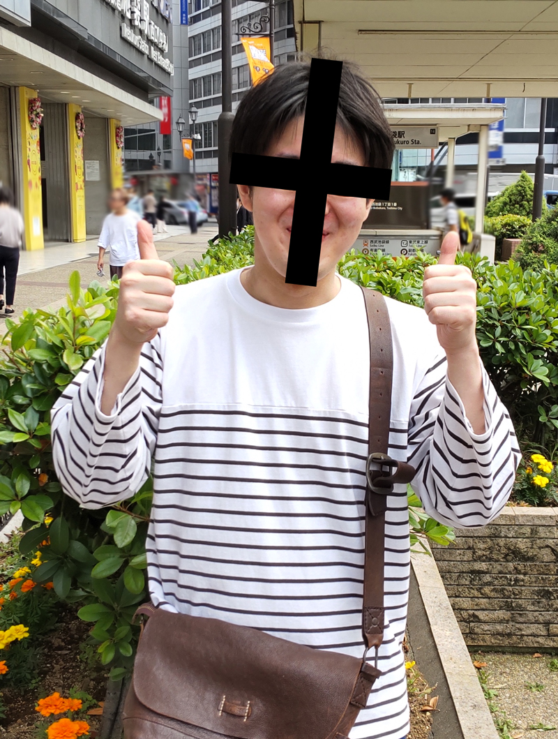 顔バレは恥ずかしいので黒の目線を付けたら、まさに作中のモブになりました。