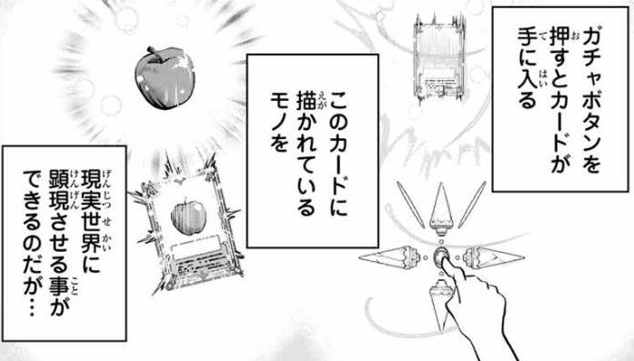 モンスターに追い詰められた彼は、一か八かで『無限ガチャ』を発動します。何の意味もない、いつも通りのゴミが出るかと思いきや……