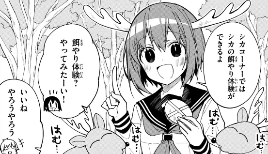 シカ部の廃部を目論む生徒会副会長の猫山田根子(ねこやまだ ねこ)さん。偵察のため新入部員になりすましてシカ部に潜入するのですが、そこで猫山田さんが目にした、シカ部が行っているシカ練の内容とは?