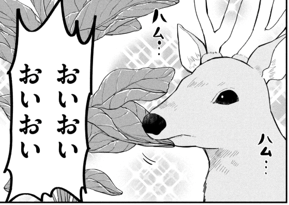 書かれているとおり、シカは草食動物なので、その辺に生えている草や葉っぱを食べて生活しているようです。また――