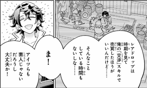 ガイウスはそれを知っていたからこそ、素材を貯めておき、時期を見て「交渉」スキルを使うことで利益を生み出していました。